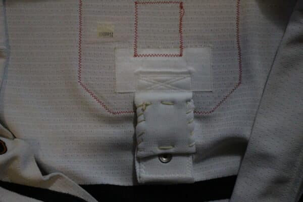 This white jersey was worn by Anders Eriksson in the 1998-99 season with the Chicago Blackhawks.